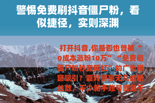 打开抖音,你是否也曾被“0成本涨粉10万”“免费刷僵尸粉秒变网红”的广告弹窗吸引?面对寥寥无几的粉丝数,不少新手账号或急于求成的创作者,可能会动起“走捷径”的念头,但你知道吗?“免费刷僵尸粉”不仅无法帮你实现流量梦,反而可能让账号陷入万劫不复的境地——信息泄露、账号封禁、流量清零,这些代价远比“免费”二字沉重。