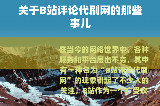 在当今的网络世界中,各种服务和平台层出不穷,其中有一种名为“B站评论代刷网”的现象引起了不少人的关注。