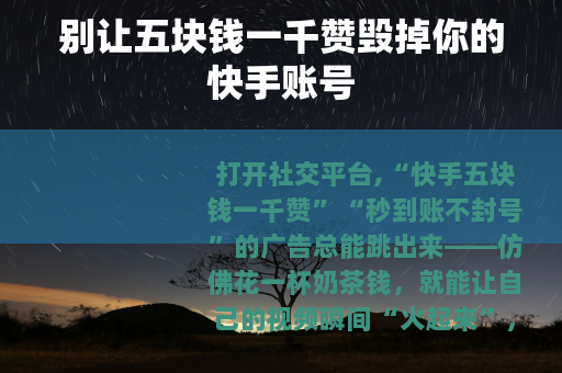 打开社交平台,“快手五块钱一千赞”“秒到账不封号”的广告总能跳出来——仿佛花一杯奶茶钱,就能让自己的视频瞬间“火起来”,不少新手创作者或小商家看着寥寥无几的点赞数,难免心动:刷点赞,至少数据好看,说不定还能吸引真实用户?但这种“捷径”,其实是通往账号危机的陷阱。