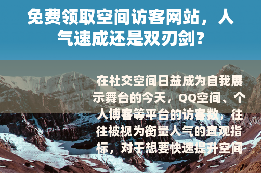 在社交空间日益成为自我展示舞台的今天,QQ空间、个人博客等平台的访客数,往往被视为衡量人气的直观指标,对于想要快速提升空间曝光度却不愿投入资金的用户来说,“免费领取空间访客网站”似乎成了一剂“速效药”,这类网站究竟是什么?如何使用?又隐藏着哪些风险?今天我们就来一探究竟。