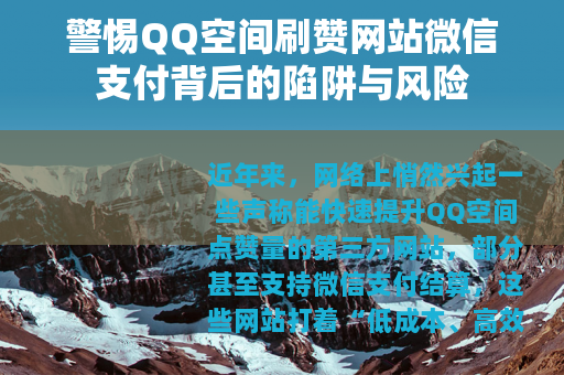 面对“QQ空间刷赞网站微信支付”这类诱惑,我们需保持清醒:任何试图走捷径的行为,都可能付出沉重代价,遵守平台规则、保护个人信息、拒绝虚假互动,既是维护健康网络环境的责任,也是守护自身权益的底线,让我们用真实的内容和真诚的互动,构建有温度的QQ空间,而非被虚假数据绑架的“数字牢笼”。