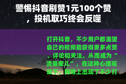 “1元100个赞”看似是捷径,实则是通往账号毁灭的“歧途”,与其花费时间和金钱在虚假数据上,不如沉下心来打磨内容,用真诚和创意打动用户,抖音的流量逻辑从来不是“投机取巧”,而是“内容驱动”,拒绝刷赞,专注创作,才是在抖音立足的正确姿势。