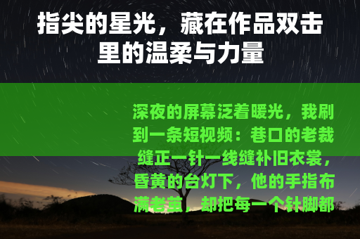 深夜的屏幕泛着暖光,我刷到一条短视频:巷口的老裁缝正一针一线缝补旧衣裳,昏黄的台灯下,他的手指布满老茧,却把每一个针脚都走得整齐,没有犹豫,我的拇指轻轻在屏幕上点了两下——小红心亮起的瞬间,仿佛和屏幕那头的老人,完成了一次无声的击掌,这就是“作品双击”,一个简单到近乎本能的动作,却藏着数字时代里最朴素的温柔与力量。