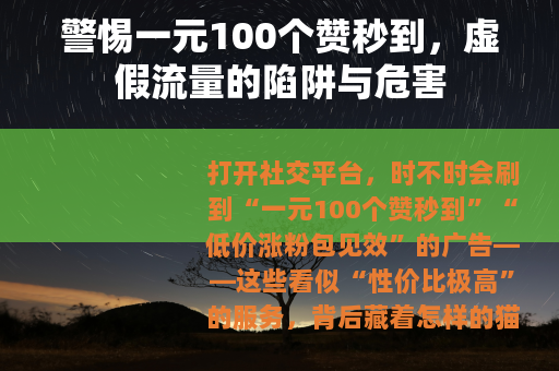 打开社交平台,时不时会刷到“一元100个赞秒到”“低价涨粉包见效”的广告——这些看似“性价比极高”的服务,背后藏着怎样的猫腻?又会给用户带来哪些风险?