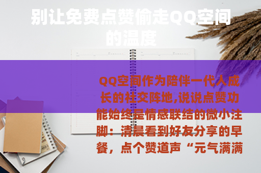 QQ空间的价值,从来不是点赞数量的排行榜,而是那些藏在说说里的青春回忆、朋友间的细碎温暖,别让“免费点赞”偷走这份珍贵——让每一个点赞,都成为真实情感的传递,才是对这个陪伴我们多年的平台,最好的温柔相待。