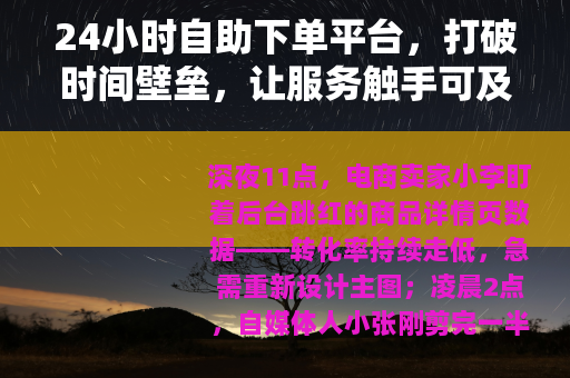 24小时自助下单平台的兴起,是技术进步与需求升级的必然结果,AI技术的普及(如AI绘图、智能客服)让自动化服务成为可能;现代人对“效率”的追求,推动服务模式从“被动响应”转向“主动触达”。