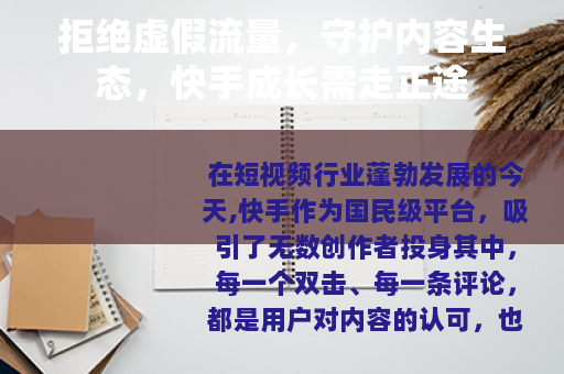 短视频平台的健康发展,需要平台、创作者和用户共同维护,快手始终致力于打击虚假流量,通过技术手段净化内容环境;作为创作者,应坚守诚信底线,拒绝虚假服务,用真实的内容打动用户;而用户也应理性看待数据,选择真正有价值的内容互动,让优质创作者获得应有的回报。