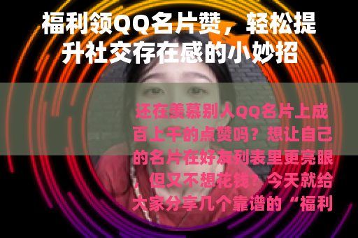 最后想说:QQ名片赞不仅是数字,更是好友对你的关注和认可,通过正规渠道领福利赞,既安全又放心;而让自己的名片充满个性和温度,才是提升社交存在感的核心,赶紧去试试这些方法,让你的QQ名片亮起来吧!