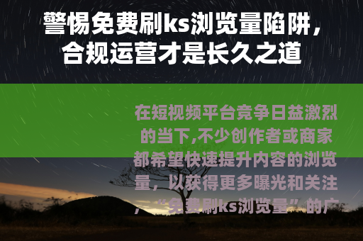 在短视频平台竞争日益激烈的当下,不少创作者或商家都希望快速提升内容的浏览量,以获得更多曝光和关注。“免费刷ks浏览量”的广告悄然出现在各类社交平台、论坛甚至私信中,看似“零成本”的捷径,实则隐藏着诸多风险和陷阱。