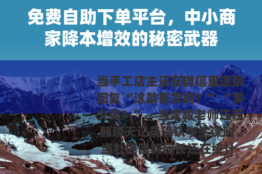 当手工店主还在微信里逐条回复“这款有货吗?”“多少钱?”,当家教老师还在翻聊天记录确认学生课时,当社区团购团长还在统计 Excel 订单到深夜——他们或许都忽略了一个能彻底解放双手的工具:免费自助下单平台。
