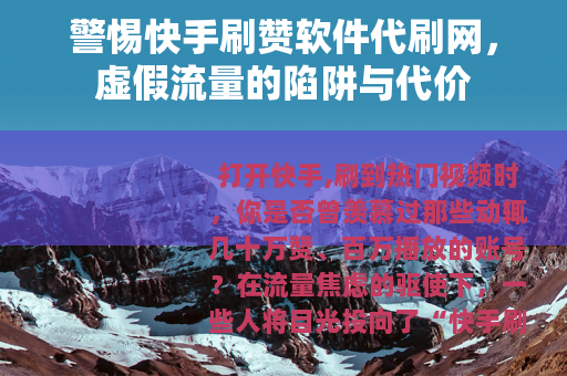 打开快手,刷到热门视频时,你是否曾羡慕过那些动辄几十万赞、百万播放的账号?在流量焦虑的驱使下,一些人将目光投向了“快手刷赞软件”“代刷网”,试图通过付费购买虚假点赞、粉丝来快速“涨粉”“上热门”,这种看似捷径的操作,背后藏着重重风险,不仅违背平台规则,更可能让你付出沉重代价。