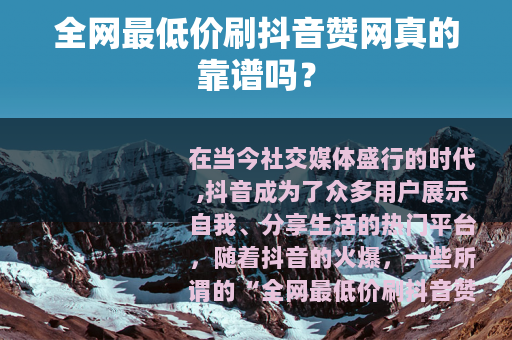 在当今社交媒体盛行的时代,抖音成为了众多用户展示自我、分享生活的热门平台,随着抖音的火爆,一些所谓的“全网最低价刷抖音赞网”也应运而生,吸引了不少人的关注,但这些刷赞网真的像它们所宣传的那样美好吗?