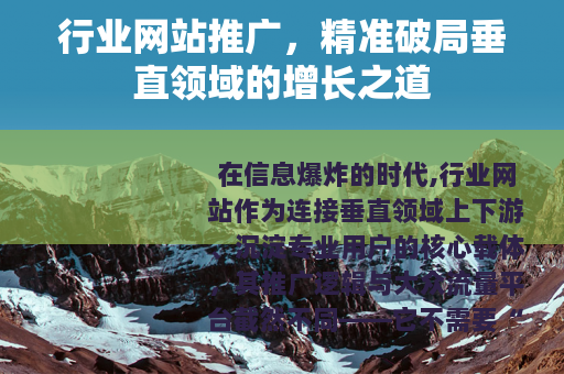 在信息爆炸的时代,行业网站作为连接垂直领域上下游、沉淀专业用户的核心载体,其推广逻辑与大众流量平台截然不同——它不需要“亿级曝光”,而需要“精准触达”;不需要“泛用户停留”,而需要“专业用户沉淀”,如何在窄而深的赛道里实现有效增长?以下是一套针对行业网站推广的实战策略。