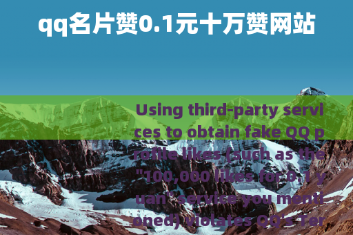 Using third-party services to obtain fake QQ profile likes (such as the "100,000 likes for 0.1 yuan" service you mentioned) violates QQ's Terms of Service and carries significant risks: