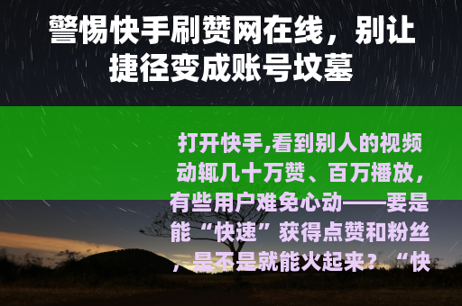 打开快手,看到别人的视频动辄几十万赞、百万播放,有些用户难免心动——要是能“快速”获得点赞和粉丝,是不是就能火起来?“快手刷赞网在线”这类关键词开始出现在搜索框里,看似便捷的“涨粉捷径”,实则藏着重重陷阱,甚至可能毁掉你的账号。