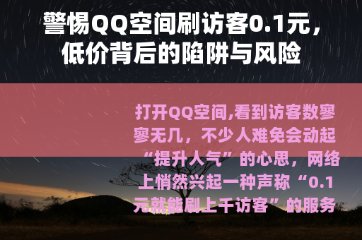 打开QQ空间,看到访客数寥寥无几,不少人难免会动起“提升人气”的心思,网络上悄然兴起一种声称“0.1元就能刷上千访客”的服务,打着“低价高效”的旗号吸引了不少用户尝试,这种看似“性价比极高”的操作,背后却藏着诸多不为人知的风险,甚至可能让你得不偿失。