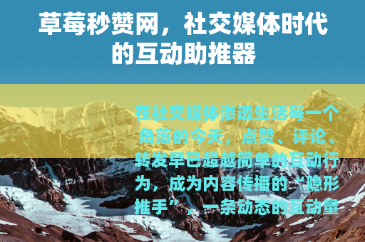 在社交媒体渗透生活每一个角落的今天,点赞、评论、转发早已超越简单的互动行为,成为内容传播的“隐形推手”,一条动态的互动量,不仅关乎创作者的成就感,更直接影响平台算法的推荐权重——低互动的内容往往会被淹没在信息洪流中,而高互动则能撬动更大的流量池,正是在这样的背景下,草莓秒赞网应运而生,为用户解决“互动不足”的痛点,成为连接优质内容与潜在受众的桥梁。