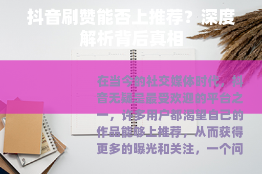 在当今的社交媒体时代,抖音无疑是最受欢迎的平台之一,许多用户都渴望自己的作品能够上推荐,从而获得更多的曝光和关注,一个问题应运而生:抖音刷赞的会上推荐吗?