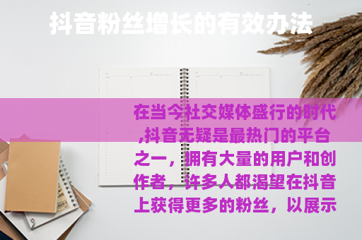 在当今社交媒体盛行的时代,抖音无疑是最热门的平台之一,拥有大量的用户和创作者,许多人都渴望在抖音上获得更多的粉丝,以展示自己的才华、产品或服务等,有什么办法能让抖音粉丝变多呢?以下是一些实用的方法。