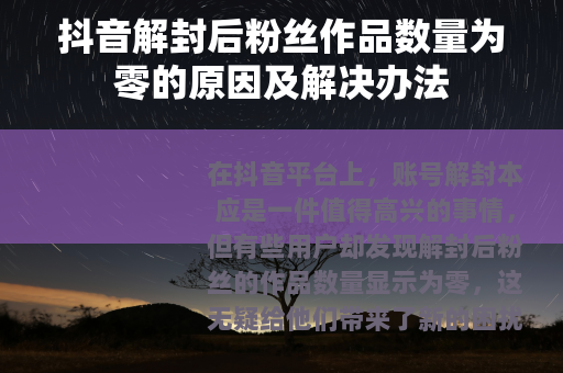 在抖音平台上,账号解封本应是一件值得高兴的事情,但有些用户却发现解封后粉丝的作品数量显示为零,这无疑给他们带来了新的困扰,我们就来深入探讨一下这一现象背后的原因以及相应的解决办法。