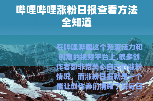在哔哩哔哩这个充满活力和创意的视频平台上,很多创作者都非常关心自己的涨粉情况,而涨粉日报就是一个能让创作者们清晰了解每日粉丝增长数据的重要工具,哔哩哔哩涨粉日报在哪看到呢?