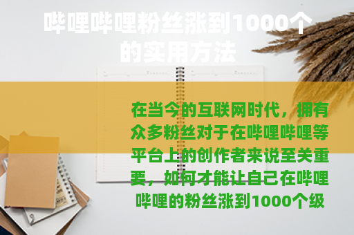 在当今的互联网时代,拥有众多粉丝对于在哔哩哔哩等平台上的创作者来说至关重要,如何才能让自己在哔哩哔哩的粉丝涨到1000个级别呢?以下是一些实用的方法。 质量是关键,要确保你所发布的视频或作品具有独特性和吸引力,无论是有趣的动画、精彩的游戏直播、有深度的知识讲解还是令人感动的生活记录,都要能在众多内容中脱颖而出,让观众一眼就被吸引住并产生继续观看的欲望。
