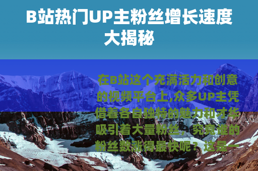 在B站这个充满活力和创意的视频平台上,众多UP主凭借着各自独特的魅力和才华吸引着大量粉丝,究竟谁的粉丝数涨得最快呢?这是一个备受关注的话题。