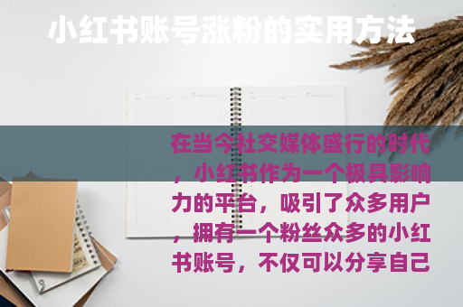 在当今社交媒体盛行的时代,小红书作为一个极具影响力的平台,吸引了众多用户,拥有一个粉丝众多的小红书账号,不仅可以分享自己的生活和兴趣,还能带来各种机会,如何给小红书账号涨粉呢?以下是一些实用的方法。