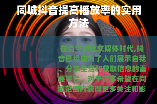通过以上这些方法的综合运用,相信你在同城抖音上的播放率一定能够得到显著提高,从而在同城范围内获得更多的关注和认可,让你的抖音之旅更加精彩。