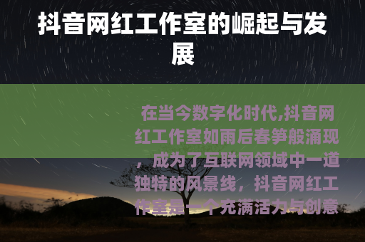 在当今数字化时代,抖音网红工作室如雨后春笋般涌现,成为了互联网领域中一道独特的风景线。