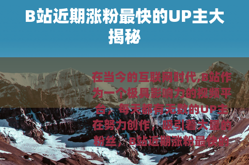 在当今的互联网时代,B站作为一个极具影响力的视频平台,每天都有无数的UP主在努力创作,吸引着大量的粉丝,B站近期涨粉最快的UP主究竟是谁呢?这无疑是众多B站用户和关注者都十分好奇的问题。