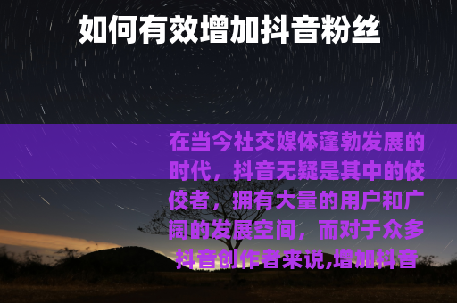 在当今社交媒体蓬勃发展的时代,抖音无疑是其中的佼佼者,拥有大量的用户和广阔的发展空间,而对于众多抖音创作者来说,增加抖音粉丝成为了一个重要的目标。
