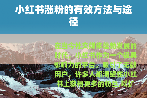 在当今社交媒体蓬勃发展的时代,小红书作为一个极具影响力的平台,吸引了无数用户,许多人都渴望在小红书上获得更多的粉丝,以扩大自己的影响力和社交圈。