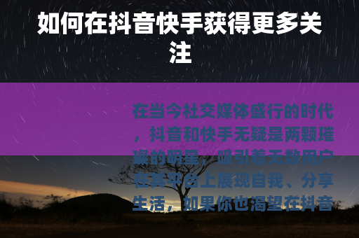 在当今社交媒体盛行的时代,抖音和快手无疑是两颗璀璨的明星,吸引着无数用户在其平台上展现自我、分享生活,如果你也渴望在抖音快手获得更多关注,那么以下这些方法或许能助你一臂之力。