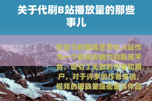 在当今的网络世界中,B站作为一个极具影响力的视频平台,吸引了无数创作者和用户,对于许多创作者来说,视频的播放量是衡量其作品受欢迎程度的一个重要指标,在追求高播放量的过程中,有一种现象逐渐引起了人们的关注,那就是代刷B站播放量。