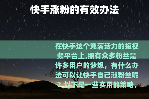在快手这个充满活力的短视频平台上,拥有众多粉丝是许多用户的梦想,有什么办法可以让快手自己涨粉丝呢?以下是一些实用的策略。