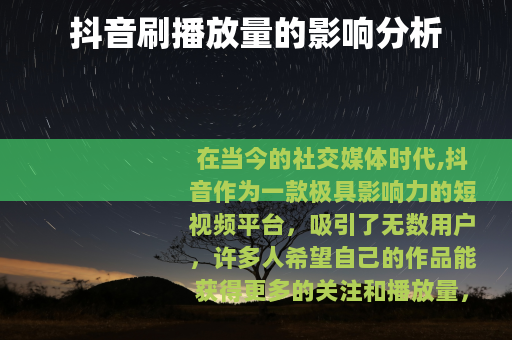在当今的社交媒体时代,抖音作为一款极具影响力的短视频平台,吸引了无数用户,许多人希望自己的作品能获得更多的关注和播放量,于是有人会考虑通过刷播放量的方式来提升数据,抖音刷播放量究竟有什么影响呢?