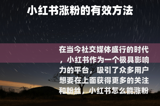 在当今社交媒体盛行的时代,小红书作为一个极具影响力的平台,吸引了众多用户想要在上面获得更多的关注和粉丝,小红书怎么能涨粉呢?以下是一些实用的方法。