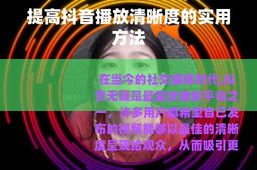 通过以上这些方法的综合运用,相信你能够有效提高抖音视频的播放清晰度,让你的作品在众多视频中脱颖而出,吸引更多用户的喜爱和关注。