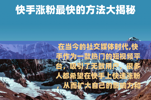 在当今的社交媒体时代,快手作为一款热门的短视频平台,吸引了无数用户,很多人都希望在快手上快速涨粉,从而扩大自己的影响力和实现各种目标,以下是一些快手涨粉最快的方法。