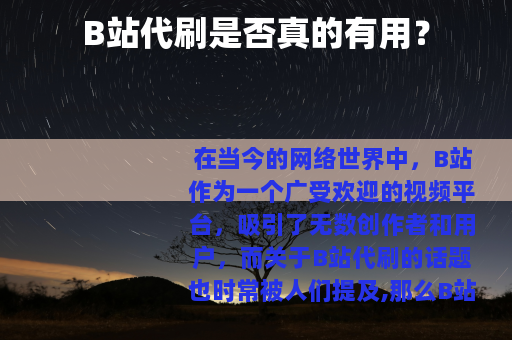 在当今的网络世界中,B站作为一个广受欢迎的视频平台,吸引了无数创作者和用户,而关于B站代刷的话题也时常被人们提及,那么B站代刷到底有没有用呢?