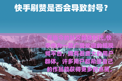 在当今的社交媒体时代,快手作为一款广受欢迎的短视频平台,拥有着庞大的用户群体,许多用户都希望自己的作品能获得更多的点赞,以增加曝光度和人气,一个问题便应运而生:快手刷赞会封号吗?
