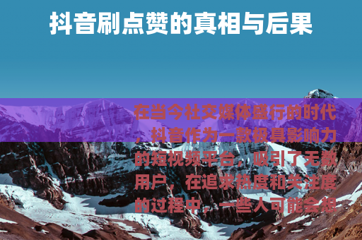 在当今社交媒体盛行的时代,抖音作为一款极具影响力的短视频平台,吸引了无数用户,在追求热度和关注度的过程中,一些人可能会想到通过不正当手段来提升自己的点赞数,比如刷点赞,但大家需要明白,抖音刷点赞是一种不可取的行为,会带来诸多不良影响。