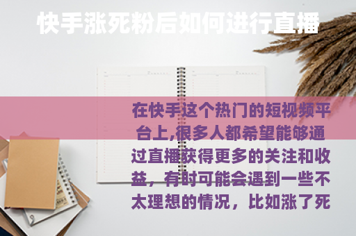 在快手这个热门的短视频平台上,很多人都希望能够通过直播获得更多的关注和收益,有时可能会遇到一些不太理想的情况,比如涨了死粉,那么当快手涨了死粉后,该如何进行直播呢?