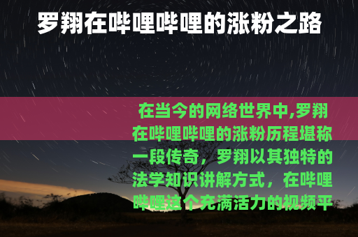 罗翔在哔哩哔哩的涨粉现象,不仅体现了他个人的才华和努力,也反映了当今社会人们对知识的渴望和对优质内容的追求,随着他在哔哩哔哩上的影响力不断扩大,相信他会为更多的人带来法律知识的启蒙和启发,成为网络教育领域的一颗璀璨明星。
