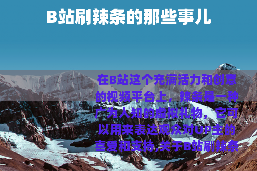 在B站这个充满活力和创意的视频平台上,辣条是一种广为人知的虚拟礼物,它可以用来表达观众对UP主的喜爱和支持,关于B站刷辣条代码的话题也在一些圈子里引起了不小的讨论。