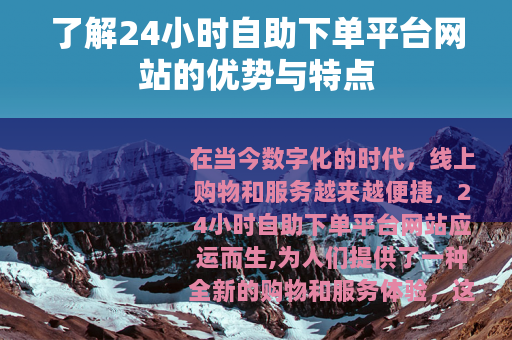 在当今数字化的时代,线上购物和服务越来越便捷,24小时自助下单平台网站应运而生,为人们提供了一种全新的购物和服务体验。