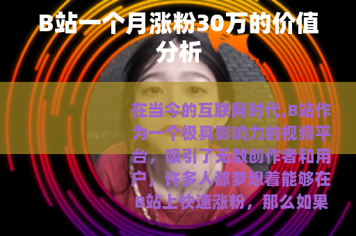 在当今的互联网时代,B站作为一个极具影响力的视频平台,吸引了无数创作者和用户,许多人都梦想着能够在B站上快速涨粉,那么如果一个账号在一个月内涨粉30万,这背后有着怎样的价值呢?