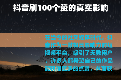 在当今的社交媒体时代,抖音作为一款极具影响力的短视频平台,吸引了无数用户,许多人都希望自己的作品能获得更多的点赞,从而获得更多的关注和流量,就有人会想,如果在抖音刷100个赞会怎样呢?