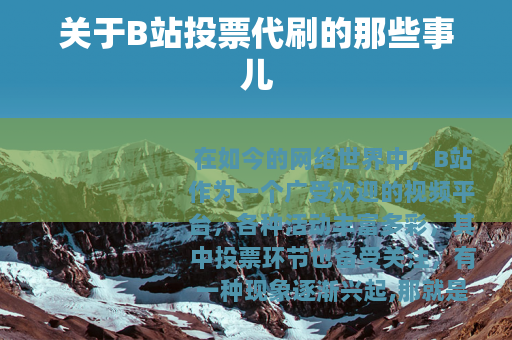 在如今的网络世界中,B站作为一个广受欢迎的视频平台,各种活动丰富多彩,其中投票环节也备受关注,有一种现象逐渐兴起,那就是B站投票代刷。